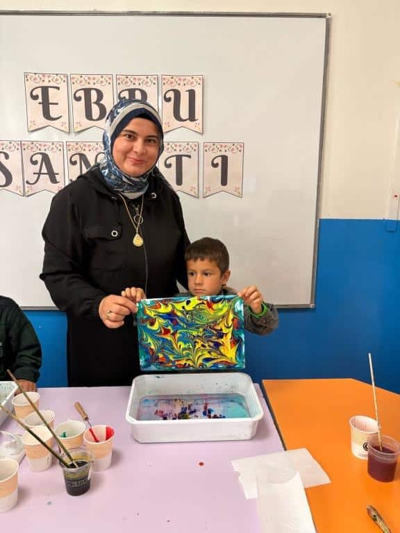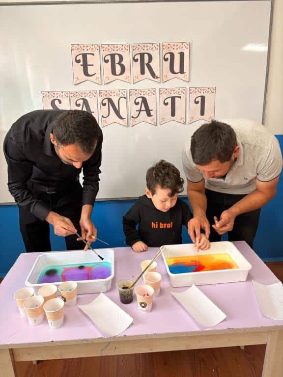 Okul öncesi öğrencilerimiz, velilerimizin de katılımıyla gerçekleştirilen Ebru sanatı etkinliğinde keyifli anlar yaşadılar.Etkinlikte öğrencilerimiz hem geleneksel Türk sanatlarından birini tanıma fırsatı buldu hem de aileleriyle birlikte üretmenin mutluluğunu yaşadılar.Katılım sağlayan tüm velilerimize teşekkür ederiz.